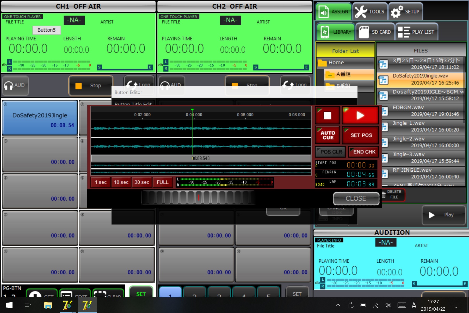 Microsoft Surface Go(タッチパネル)で動作する簡易型プロ用サウンドプレイヤーです。